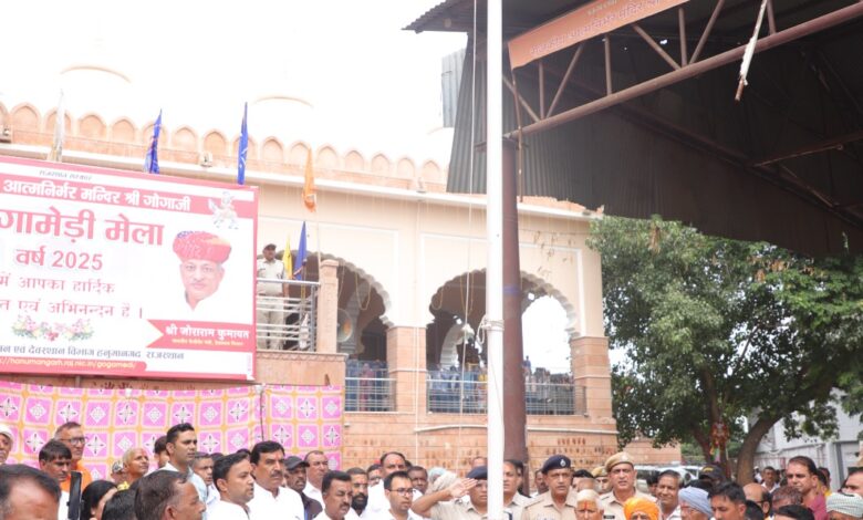 हनुमानगढ़, 9 अगस्त। उत्तरी भारत के सबसे बड़े सांप्रदायिक सौहार्द के प्रतीक गोगामेड़ी मेले का शनिवार को विधिवत पूजा-अर्चना, झंडारोहण और राष्ट्रगान के साथ शुभारंभ किया गया। जिला कलेक्टर डॉ. खुशाल यादव, भादरा विधायक संजीव बेनीवाल एवं एसपी हरीशंकर ने शुभारंभ कार्यक्रम में शिरकत की। इस अवसर पर जिला कलेक्टर सहित जनप्रतिनिधियों ने गोगाजी की समाधि पर चादर चढ़ाई तथा माथा टेक कर जिलेवासियों की समृद्धि के लिए प्रार्थना की।