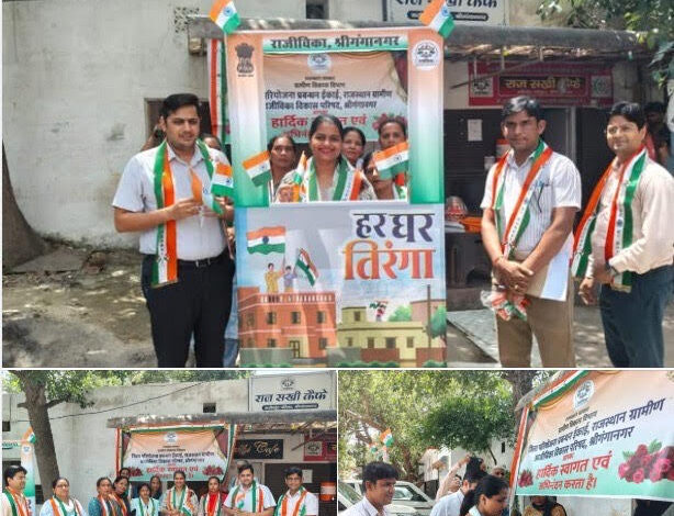 हर घर तिरंगा अभियान के तहत शुक्रवार को जिला कलेक्ट्रेट परिसर में विशेष स्टॉल का उद्घाटन जिला कलक्टर डॉ. मंजू ने किया। इस दौरान जिला परिषद के मुख्य कार्यकारी अधिकारी श्री गिरिधर, राजीविका के जिला परियोजना प्रबंधक श्री हरिराम चौहान, समस्त राजीविका स्टाफ और गंगानगर ब्लॉक के सभी क्लस्टर लेवल फेडरेशन पदाधिकारी और सदस्य मौजूद रहे।