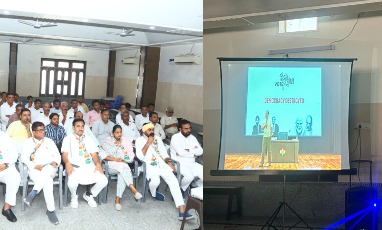 पीसीसी उपाध्यक्ष भरतराम मेघवाल व जिला प्रमुख कविता मेघवाल ने कहा कि हमारा कर्तव्य है कि हम इस ‘वोट चोरी’ के खुलासे को केवल बैठक तक सीमित न रखें। हमें इसे हर गांव, हर गली और हर घर तक पहुंचाना है। हमें आम जनता को बताना होगा कि उनके वोट का महत्व क्या है और कैसे उनके लोकतांत्रिक अधिकारों के साथ खिलवाड़ किया जा रहा है। यह राहुल गांधी बनाम नरेंद्र मोदी की लड़ाई नहीं है। यह कांग्रेस बनाम बीजेपी नहीं है। यह सत्ता और विपक्ष के बीच का भी मसला नहीं है। असल में यह आपके वजूद का सवाल है और अब आपके पास कोई चारा नहीं है। आप चुप नहीं रह सकते हैं। क्योंकि आपका वह अधिकार, जो आपको हमारे लोकतंत्र में सबसे ज्यादा ताकत देता है-वोट का अधिकार छीना जा रहा है।