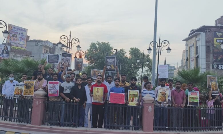 भगत सिंह चौक पर कुत्तों की सुरक्षा के समर्थन में जुटे सैकड़ों लोग, युवाओं ने बढ़-चढ़कर लिया हिस्सा