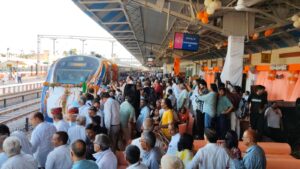 बीकानेर से दिल्ली केंट के बीच चलने वाली वंदे भारत ट्रेन गुरुवार की शाम रतनगढ़ जंक्शन पर पहुंची