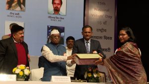 राज्य स्तरीय कार्यक्रम में सम्मानित हुईं गंगानगर की उप जिला निर्वाचन अधिकारी -माननीय राज्यपाल ने राष्ट्रीय मतदाता दिवस कार्यक्रम में किया सम्मानित