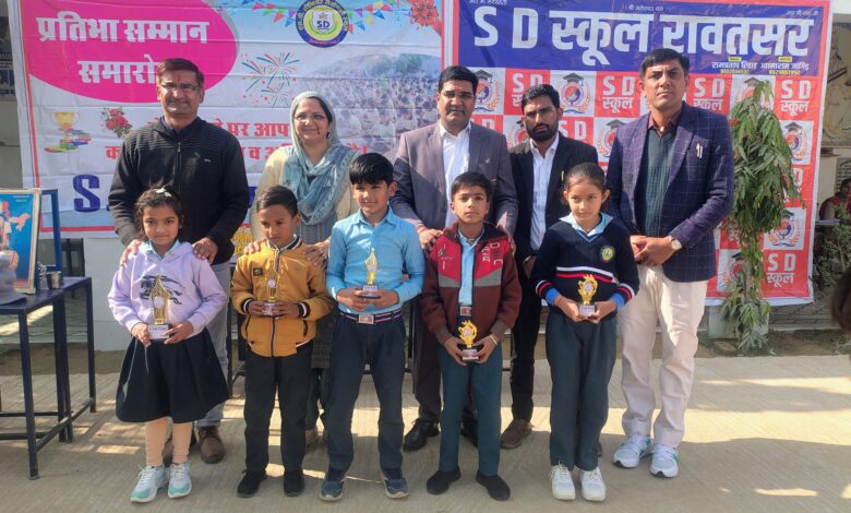 एस.डी. स्कूल रावतसर में अर्द्धवार्षिक परीक्षा परिणाम घोषित, मेधावी विद्यार्थियों का हुआ सम्मान