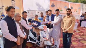इस अवसर पर मुख्यमंत्री दिव्यांग स्कूटी योजना के तहत सामाजिक न्याय एवं अधिकारिता विभाग द्वारा दिव्यांगजनों को आवागमन में आत्मनिर्भर बनाने के उद्देश्य से 11 स्कूटियों का वितरण किया गया।