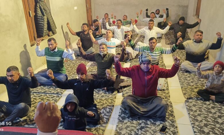पतंजलि योग परिवार ऐलनाबाद, जिला सिरसा एवं ग्राम पंचायत ढाणी शेरावाली के संयुक्त तत्वावधान में आयोजित पाँच दिवसीय निःशुल्क योग शिविर के चौथे दिन योग अभ्यास का आयोजन किया गया। कार्यक्रम का शुभारंभ माँ सरस्वती के चित्र के समक्ष दीप प्रज्वलित कर किया गया।इस अवसर पर पतंजलि सोशल मीडिया हरियाणा सह-राज्य प्रभारी एवं मुख्य योग शिक्षक हेमराज सपरा, महामंत्री मास्टर राजेन्द्र प्रसाद तथा तहसील मीडिया प्रभारी नवशेर सिंह निरंजन गिदड़ा उपस्थित रहे। मुख्य योग शिक्षक व सहयोगी शिक्षक राजेन्द्र प्रसाद द्वारा उपस्थित ग्रामवासियों को सूक्ष्म व्यायाम, विभिन्न योगासनों तथा प्राणायाम का अभ्यास करवाया गया।मुख्य योग शिक्षक ने योग के महत्व पर बात करते हुए योग ऋषि स्वामी रामदेव जी के विचारों का उल्लेख किया। उन्होंने कहा कि आत्म जागरण से राष्ट्र जागरण और आत्म निर्माण से राष्ट्र निर्माण संभव है। यदि शरीर और मन स्वस्थ नहीं होंगे तो लक्ष्य की प्राप्ति कठिन होती है। नियमित योग अभ्यास से मन और शरीर दोनों स्वस्थ रहते हैं।चौथे दिन के योग सत्र में सरपंच नाथूराम बरावड़, हनुमान गोदारा, डॉ. कुलदीप मुदलिया समिति मेंबर,रोहतास कुमार, सुरजीत, ओमप्रकाश, सुभाष, रमेश बरावड़, युगराज घोडेला, मुकेश कुमार फौजी, लवीश कुमार, धर्मवीर, प्रदीप सहारण, विशाल, सुरजीत सिंह, लालचंद, राजेश सिहाग, विनोद कुमार, सुनील भादू, विजयपाल, सतपाल सहित अन्य ग्रामीण व योग साधक उपस्थित रहे।