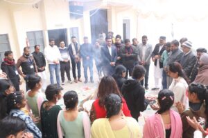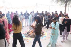 हनुमानगढ़। श्री गुरूनानक खालसा पी.जी महाविद्यालय हनुमानगढ़ जंक्शन में लोहडी पर्व मनाया गया एवं बी.ए., बीएससी., बी.कॉम, एवं एम.ए. व एम. एससी. द्वितीय एवं चतुर्थ सेमेस्टर में उत्कृष्ट अंक प्राप्त करने वाले विद्यार्थियों का अभिनंदन समारोह का भी आयोजन किया गया। इस अवसर पर मुख्य अतिथि सभापति श्री सुमित रिणवा एवं सादासिंह खोसा और महाविद्यालय प्रबन्ध समिति श्री मलकीत सिंह मान व श्री अंग्रेज सिंह भूल्लर द्वारा अव्वल रहें विद्यार्थियों को स्मृति चिन्ह देकर सम्मानित किया गया। लोहडी पर्व पर महाविद्यालय के छात्र-छात्राओं द्वारा सांस्कृतिक प्रस्तुतियां दी गयी। इस अवसर पर महाविद्यालय में पधारे अतिथि डा. अनुभव बिशू, प्रदीप तिवाड़ी, भारत भुषण जी एवं महाविद्यालय स्टाफ डा. कमलेश सहारण, सुखराज, कन्हैया, रविन्द्र, अनिल, नवाब अली, मधुसूदन, विजय, गंगासांगर, लतेश, विरेन्द्र, गगनंदीप कौर आदि स्टाफ ने विद्यार्थियों को बधाई दी व उज्ज्वल भविष्य की कामना की