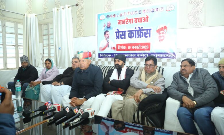 प्रेस वार्ता को जिला प्रभारी एवं प्रदेश महासचिव पूसाराम गोदारा, जिला कांग्रेस अध्यक्ष मनीष मक्कासर, पूर्व जिला अध्यक्ष सुरेन्द्र दादरी तथा पीसीसी सदस्य भूपेन्द्र चौधरी ने संबोधित किया। नेताओं ने कहा कि केंद्र व राज्य की भाजपा सरकार मनरेगा के बजट में कटौती कर रही है, भुगतान में देरी की जा रही है और काम के दिनों को सीमित करने का प्रयास किया जा रहा है, जिससे लाखों मजदूरों के सामने रोजगार का संकट खड़ा हो गया है।