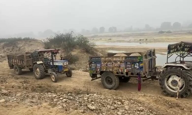 अवैध बजरी दोहन एवं परिवहन करते 6 ट्रैक्टर-ट्रॉली जब्त