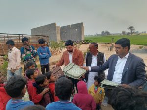 हनुमानगढ़ :-भामाशाह रजनीश/ राजेन्द्र बिजारणिया परिवार रावतसर द्वारा सीडब्ल्यूसी अध्यक्ष जितेंद्र गोयल की प्रेरणा से हनुमानगढ़ उपखंड के जोरावरपुरा के चक 2 एम स्तिथ एसकेजी(SKG) ईंट उद्योग पर प्रवासी श्रमिकों के बच्चों को सर्दी से बचाव के लिए विशेष गर्म कोट और नौनिहालों को शिक्षा की तरफ अग्रसर करने के लिए स्कूल बैग व पाठ्य सामग्री की वितरित की। इस मौके पर सीडब्ल्यूसी मजिस्ट्रेट गोयल ने बिजारणिया परिवार के इस नवाचार को प्रेरणादायी बताते हुए कहा कि शिक्षा का दान महादान होता है क्योंकि शैक्षिक शक्ति के बलबूते व्यक्ति अपना भविष्य सुखमय कर सकता है।इस नवाचार से वंचित वर्ग के बच्चों का सर्दी से बचाव तो होगा ही बच्चों का आत्मविश्वास बढ़ेगा और बच्चे शिक्षा की ओर अग्रसर होकर देश की मुख्यधारा से जुड़ेंगे। गोयल ने बताया कि बिजारणिया परिवार हर वर्ष वंचित वर्ग के बच्चों के लिए गर्मवस्त्र ,पाठ्य सामग्री, चरण पादुका जैसे नवाचार में सहयोग करते रहते है। इनसे अन्य भामाशाहों को प्रेरणा लेकर अंतिम पंक्ति के बच्चों को लाभ देना चाहिए ताकि बाल अपराधों पर नियंत्रण लगे और बच्चे राष्ट्र के नव निर्माण में अपनी भूमिका सुनिश्चित कर सकें। इस मौके पर गोयल ने ईंट भट्टा पर कार्यरत श्रमिकों को मानस अभियान के तहत नशा मुक्ति की शपथ भी दिलाई कार्यक्रम में सरपंच प्रसाशक बद्री सिराव, गुरुनानक डिप्लोमा सेंटर संचालक जगदीप सिंह,भट्टा संचालक अरविंद अग्रवाल, भाला राम शर्मा,गृह सुरक्षा गार्ड सुरेंद्र सुथार मौजूद रहे।