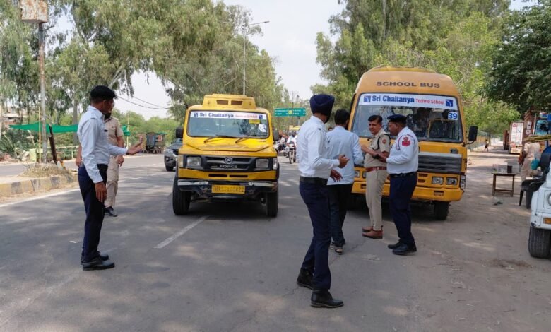 ट्रैफिक नियमों की अवहेलना करने वाली 7 स्कूली बसों के चालान,एक बस इंपाउंड