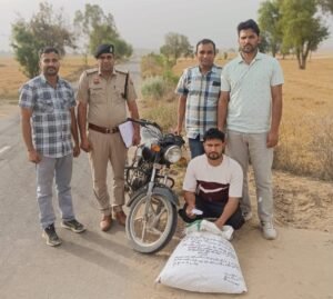ऐलनाबाद,20 अप्रैल (रमेश भार्गव ) जिला की एंटी नारकोटिक्स सेल सिरसा पुलिस टीम ने गश्त व चेकिंग के दौरान महत्वपूर्ण सूचना के आधार पर कार्रवाई करते हुए गांव बणी क्षेत्र से बाइक सवार युवक को हजारों रुपए का 9 किलो 830 ग्राम डोडा चूरा पोस्त सहित काबू किया है । इस संबंध में विस्तृत जानकारी देते हुए एंटी नारकोटिक्स सेल सिरसा पुलिस टीम के प्रभारी ने बताया कि सेल की एक पुलिस टीम गश्त के दौरान गांव बंणी की तरफ जा रही थी । इस दौरान पुलिस पार्टी जब गांव बणी के नजदीक पहुचीं तो सामने से बाइक पर प्लास्टिक कट्टा लिए हुए एक नौजवान युवक आता दिखाई दिया । उक्त बाइक सवार युवक ने सामने पुलिस की गाड़ी को देखकर अचानक बाइक को वापस मोड़कर भागने का प्रयास किया तो बाइक अचानक बंद हो गई । पुलिस पार्टी ने शक के आधार पर उक्त बाइक सवार युवक को काबू कर भागने का कारण पूछा तो कोई संतोषजनक जवाब नहीं दे पाया । पुलिस पार्टी ने शक के आधार पर राजपत्रित अधिकारी की मौजूदगी में प्लास्टिक कट्टे को खोलकर तलाशी ली तो प्लास्टिक कट्टे से 9 किलो 830 ग्राम डोडा चूरा पोस्त बरामद हुआ । उन्होंने बताया कि गिरफ्तार किए गए आरोपी की पहचान राजेंद्र उर्फ बग्गा पुत्र माडू राम निवासी गांव कुलचंद्र थाना टिब्बी जिला हनुमानगढ हाल गांव सरदारपुरिया बिका जिला गंगानगर राजस्थान के रुप में हुई है । सेल प्रभारी ने बताया कि गिरफ्तार किए गए आरोपी के खिलाफ थाना रानियां में मादक पदार्थ अधिनियम के तहत मामला दर्ज कर जांच रानिंया थाना पुलिस के हवाले की गई थी ।