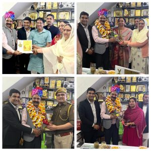 डीजीपी डिस्क से समानित होने पर जयपुर से रावतसर पधारने पर सीडब्ल्यूसी मजिस्ट्रेट जितेंद्र गोयल के रावतसर प्रतिष्ठान पर स्वागत सत्कार