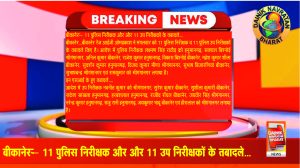 बीकानेर:- 11 पुलिस निरीक्षक और और 11 उप निरीक्षकों के तबादले…