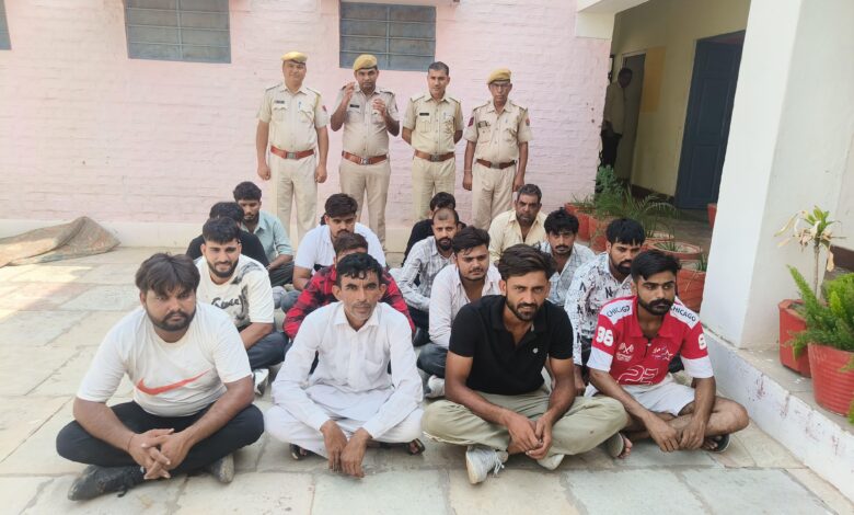जमानत पर आये हत्यारोपित के लिये शराब पार्टी का आयोजन कर शांतिभंग आशंका पर 16 लोग गिरफतार व 04 बोलेरो गाडी व 01 कार जब्त ।